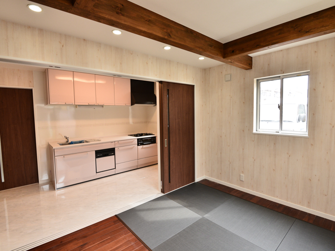- キッチンは壁側に設置することにより、スペースの確保をしています。